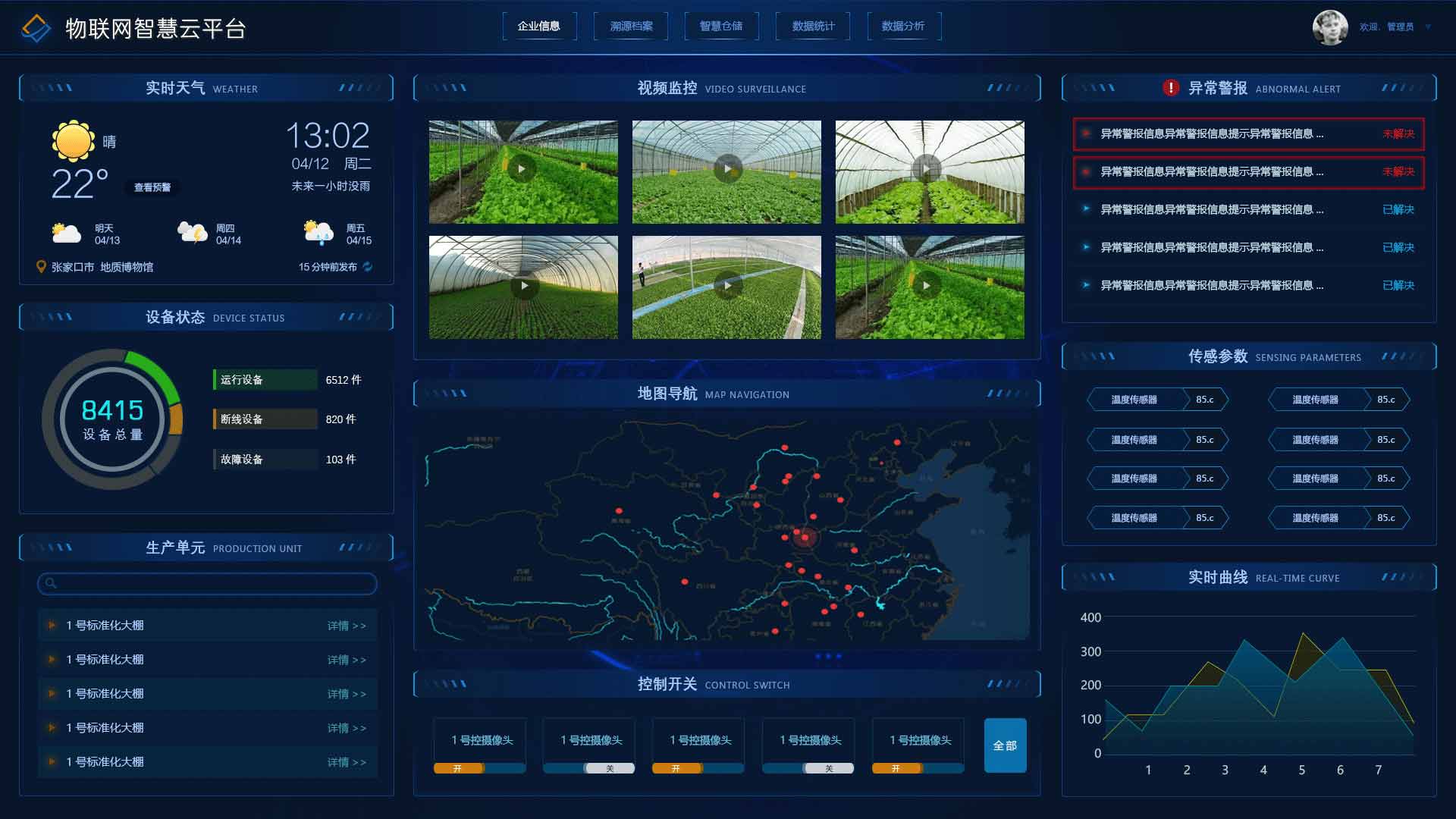 监控控制系统:主要分为设备的控制和视频监控如引入海康、宇视的视频